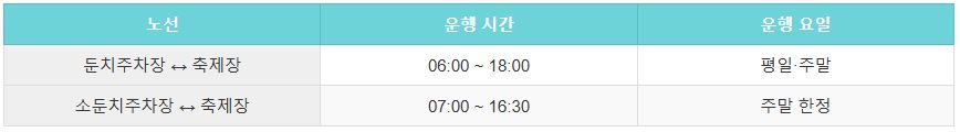 - 주차: 임시 주차장 운영 (무료 셔틀버스 운행)