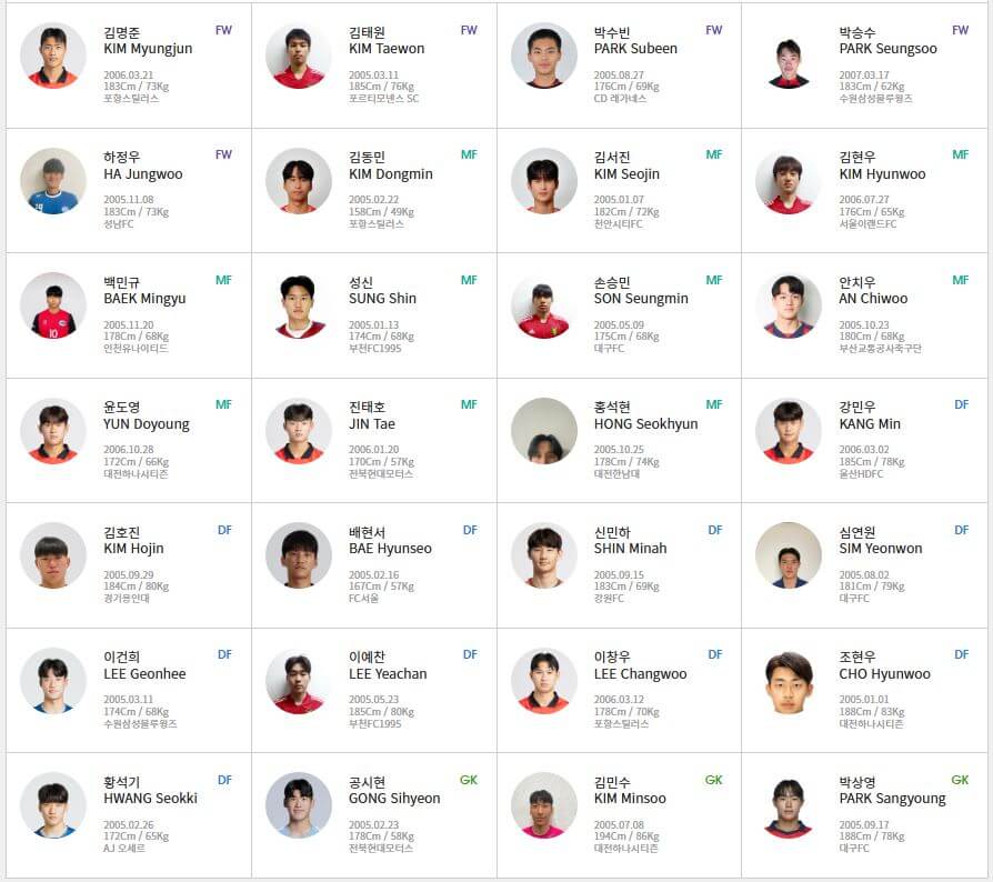 3. 대한민국 U-20 대표팀 선수 명단 & 유망주