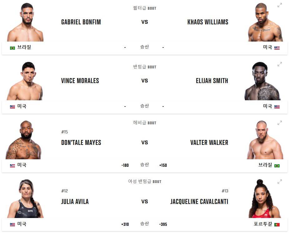 - 중계 플랫폼: UFC Fight Pass, TVING, TvN SPORTS